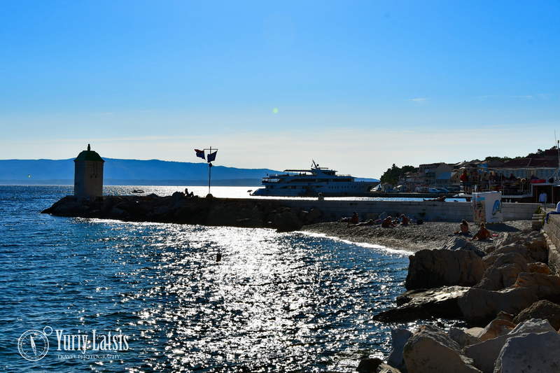 Raggiunto il porto, sul lato posteriore del molo dei traghetti si trova improvvisamente un punto di balneazione designato: la spiaggia di Veli Most.